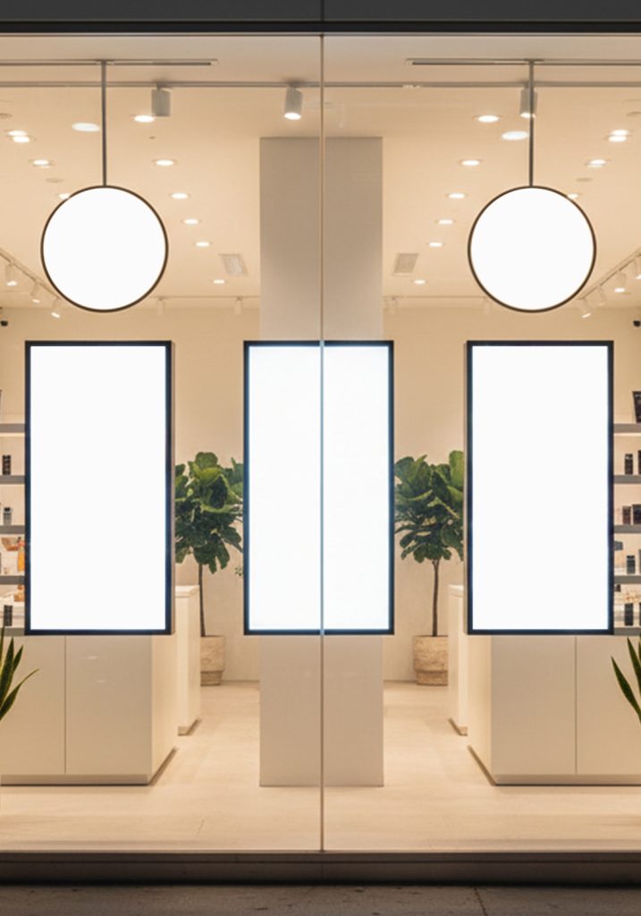 Premium retail window signage for luxury boutiques and electronics shops, ensuring brand stories shine brightly day and night.